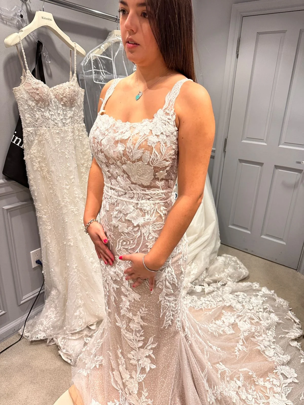 A experiência é memorável para uma noiva que está em busca do seu vestido ideal. Lá provei alguns modelos de diferentes valores que vou compartilhar aqui com vocês. Lembrando que os vestidos na Kleinfeld começam a partir de $2000.