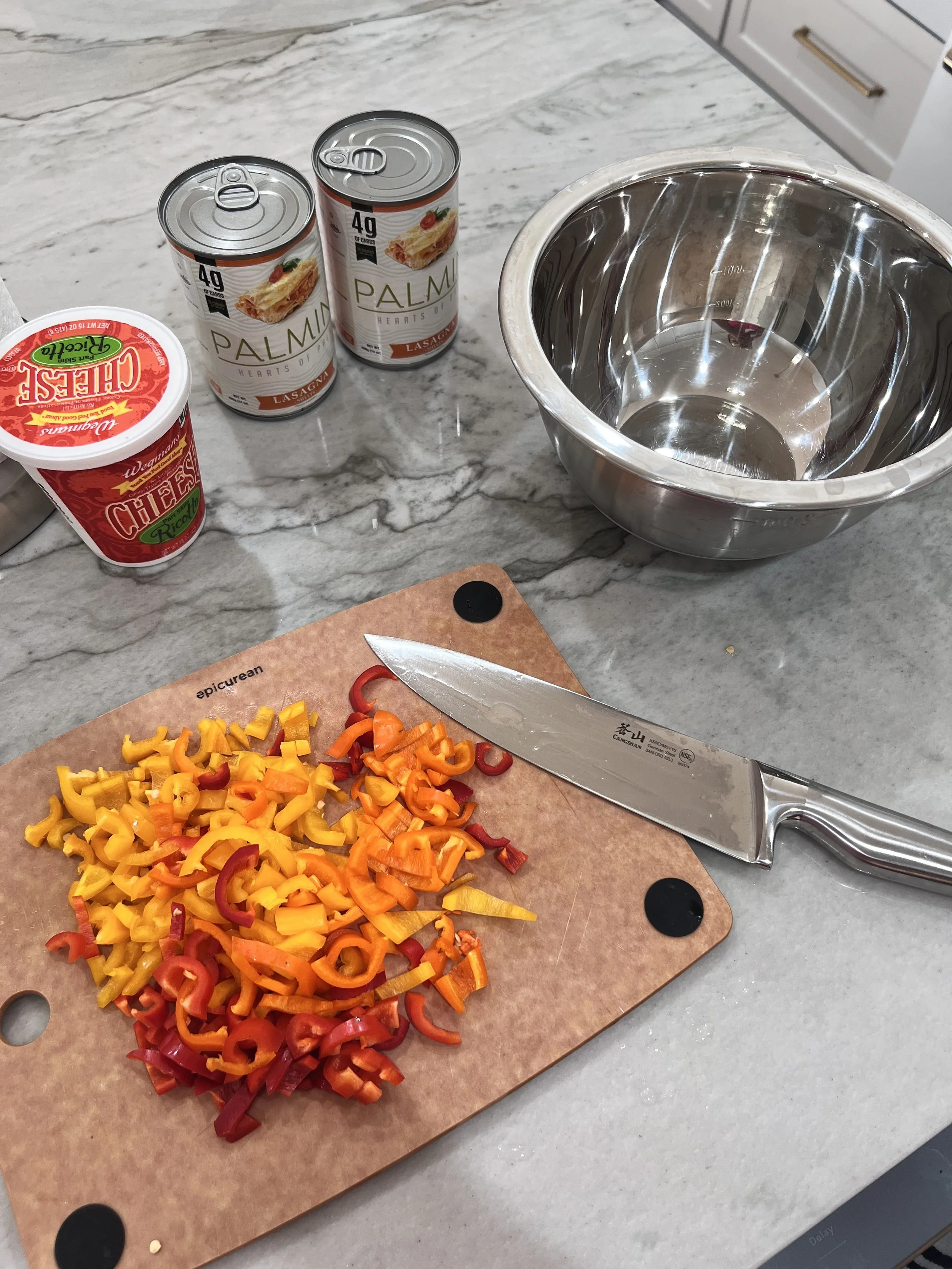 A lighter twist on the Italian classic made with hearts of palm sheets instead of pasta, filled with creamy ricotta, sautéed spinach, caramelized red onion, and colorful bell peppers.